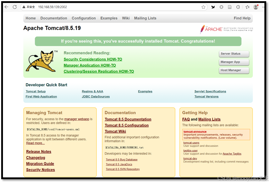 访问http://192.168.59.139:2002 提示这是一个tomcat页面,如下所示。