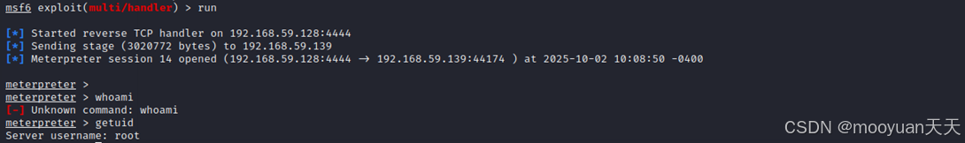 在Metasploit框架中配置并启动一个恶意载荷监听器,通过设置windows/x64/meterpreter/reverse_tcp载荷与LHOST、LPORT参数,持续监听本机4444端口的反向TCP连接,当目标系统执行匹配的木马程序后,将自动回连并建立完整的Meterpreter远程控制会话。