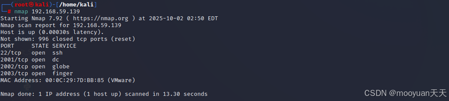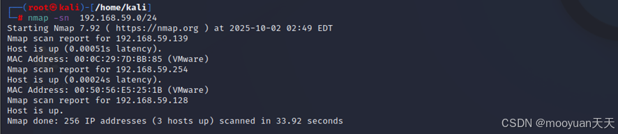 nmap 192.168.59.0/24 发现ip地址为192.168.111.139,如下所示。