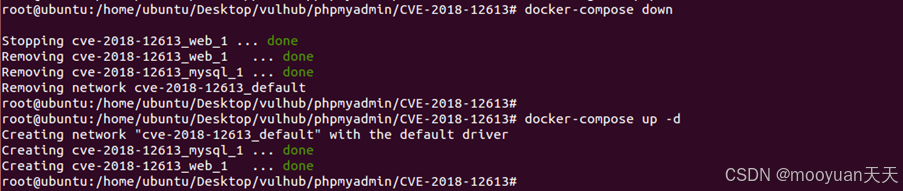 | cd /home/ubuntu/Desktop/vulhub/phpmyadmin/CVE-2018-12613 docker-compose down docker-compose up |
