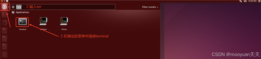 打开Web服务虚拟机,输入密码ubuntu登录系统。进入系统后按Windows键,输入terminal,进入shell页面,如下所示。