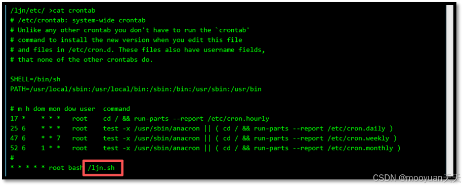 echo "* * * * * root bash /ljn.sh" >> /ljn/etc/crontab