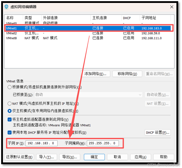 将vmnet1网段改为192.168.183.0/24,如下所示。