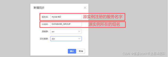 注意:集群名字可以自定义,但是一旦确认便不能被修改,否则基于此集群增加的任务,在NacosSync重启后将不会恢复成功。