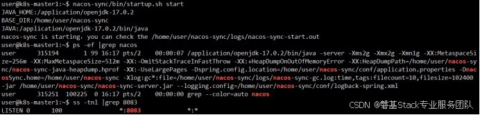如果报错可以查看nacos-sync/logs/nacos-sync-start.out的日志文件排错