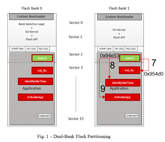 C2000 内部 Flash 划分为多个独立 bank(如 F28003x/F28P55x 支持多 bank),单个 bank 不支持"边读边写(RWW)",因此必须通过双 bank 实现 LFU: