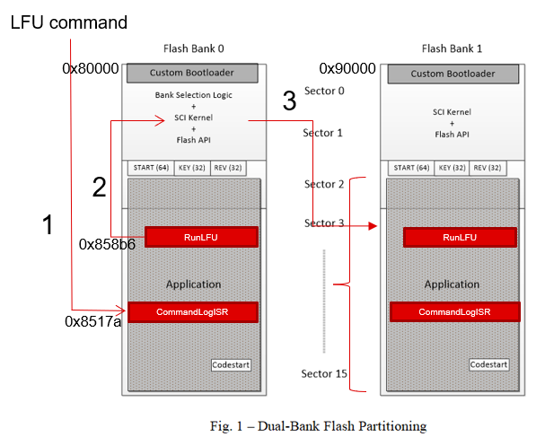 - 触发升级 :上位机通过 SCI/CAN 下发 LFU 指令,当前应用(Active Bank)的