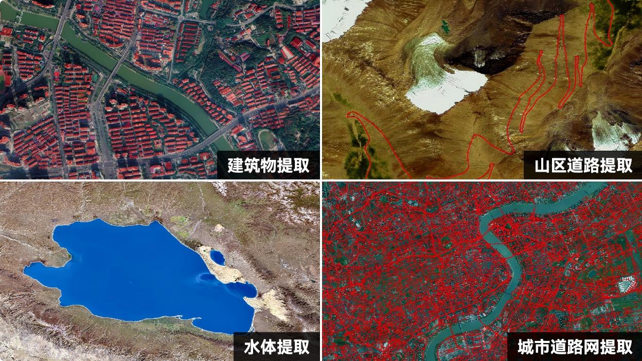 利用人工智能技术快速、及时、低成本地从海量的遥感卫星影像中提取地物要素信息,进而制作地物分类图、目标识别专题图、地物变化检测专题图、路网专题图等专题产品。