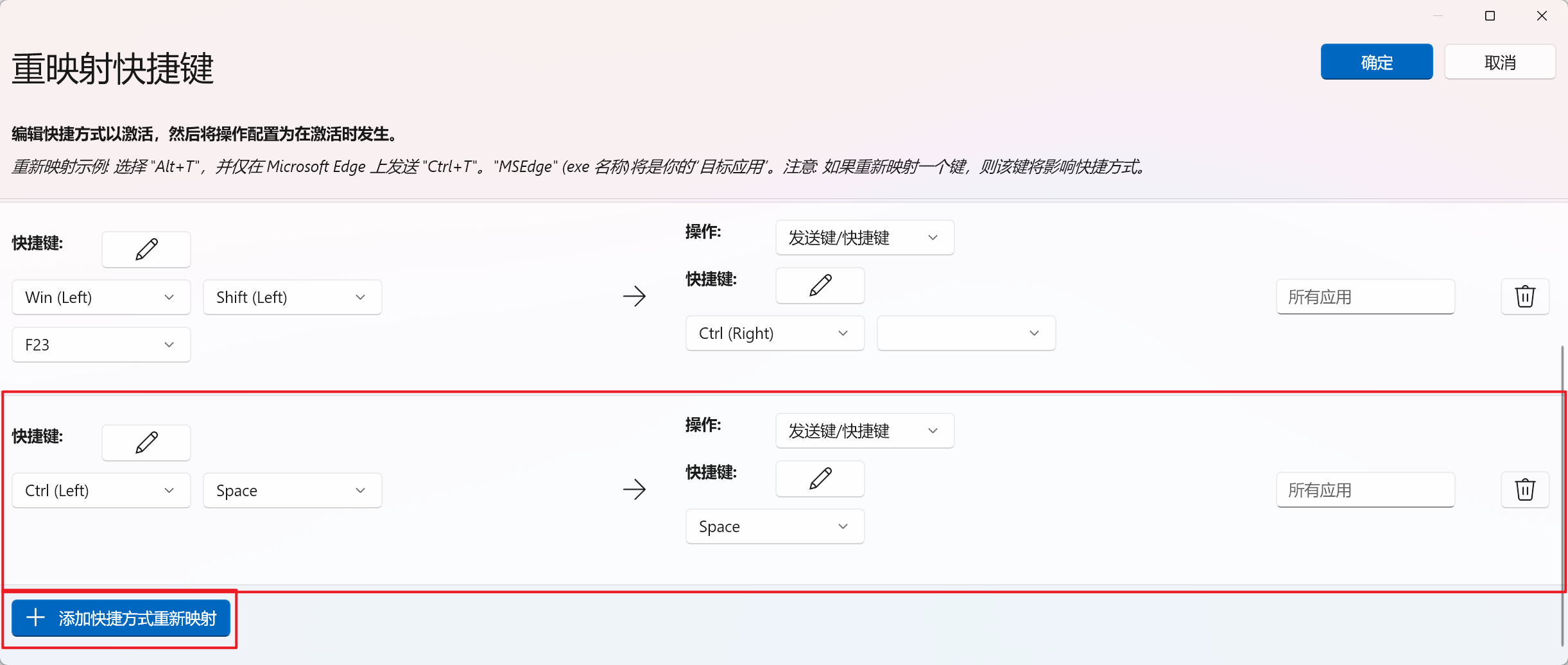 再点击 添加快捷方式重新映射,然后快捷键设置为 shift + Space,然后映射为 Space 即可