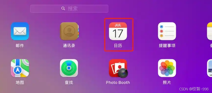 点击屏幕底部 Dock 栏的 "日历" 图标,或在启动台找到它;