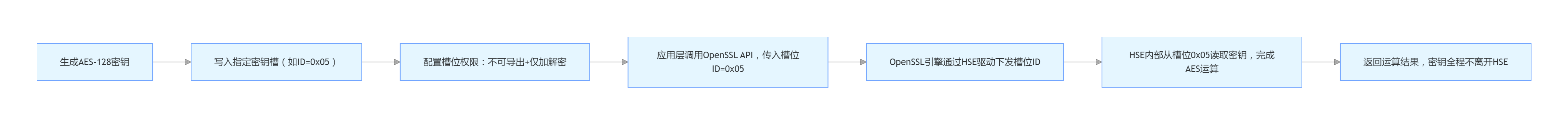 - 使用特征:应用层通过"槽位ID"调用密钥,密钥全程在HSE内部流转,无明文暴露到系统层。