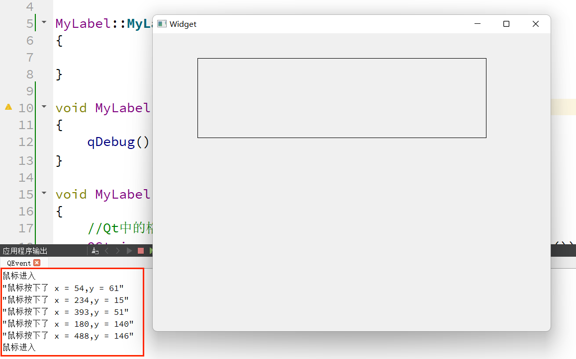 1、在上述示例的基础上,在 mylabel.h 中声明 mousePressEvent() 方法;