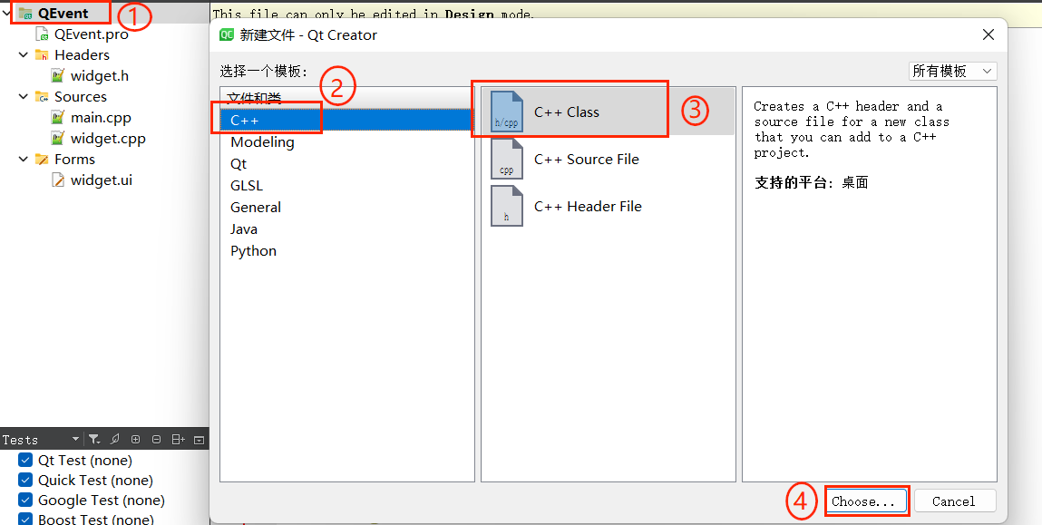 先选中项目名称 QEvent,点击鼠标右键,选择 add new ... ,弹出如下对话框: