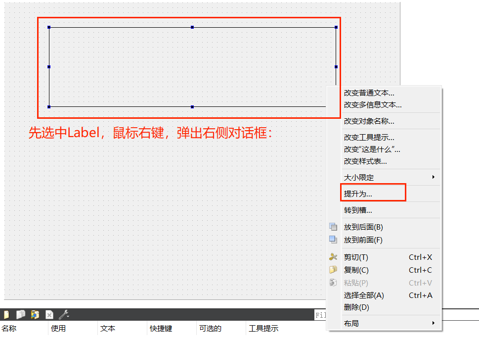 10、在 UI 文件中选中 Label,右键 ------> 提升为...