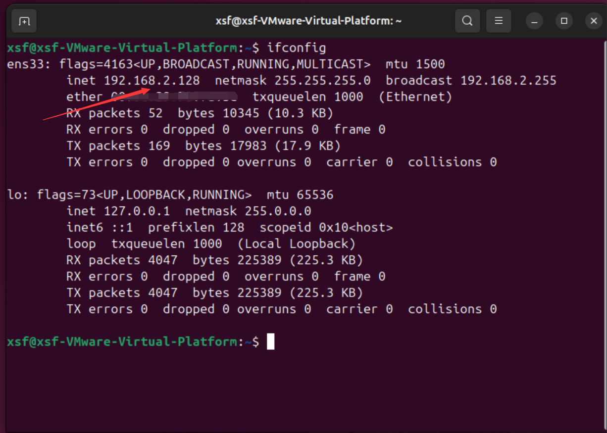 - 查看网络配置,可以看到有网络IP