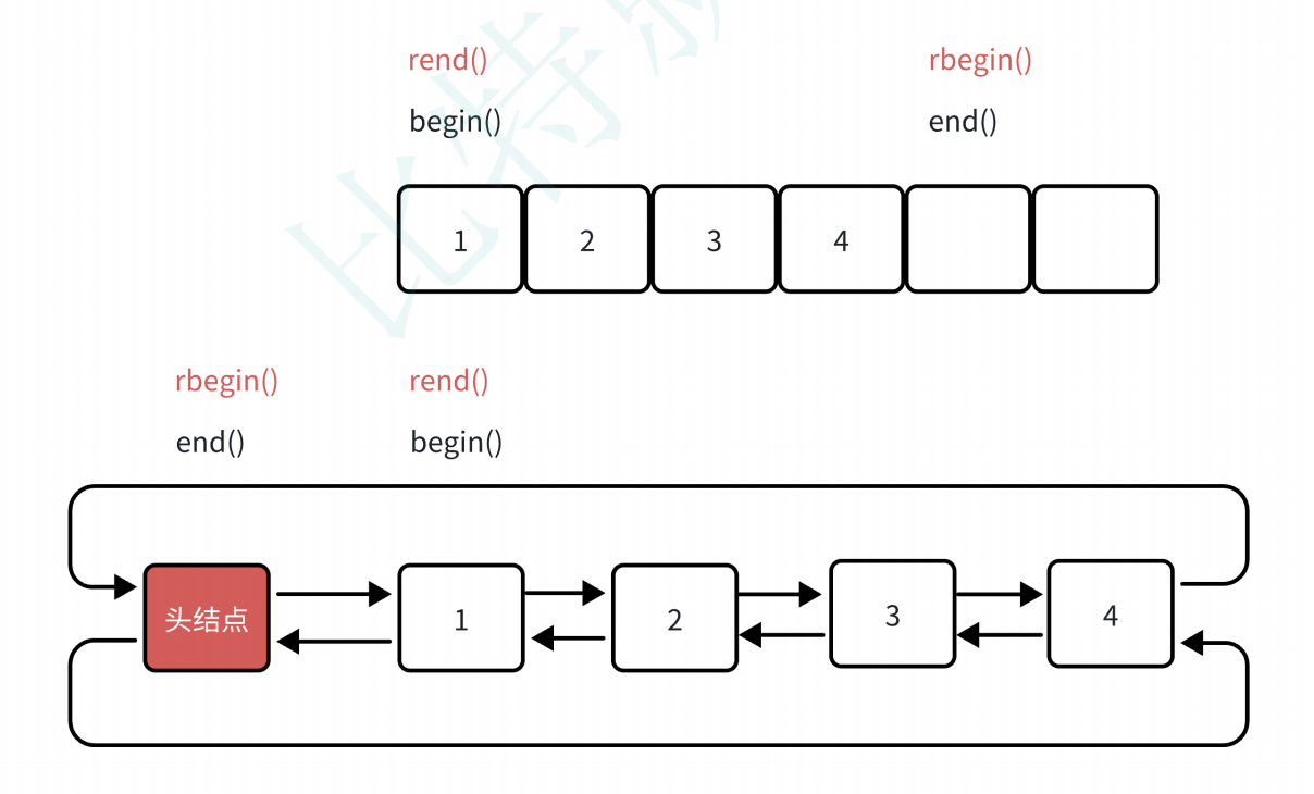 operator*的实现,内部访问的是迭代器当前位置的前一个位置。rbegin返回的是封装end位置的反向迭代器,rend封装的是begin位置迭代器的反向迭代器,这里是为了实现出一个对称,所以解引用访问的是当前位置的前一个位置。