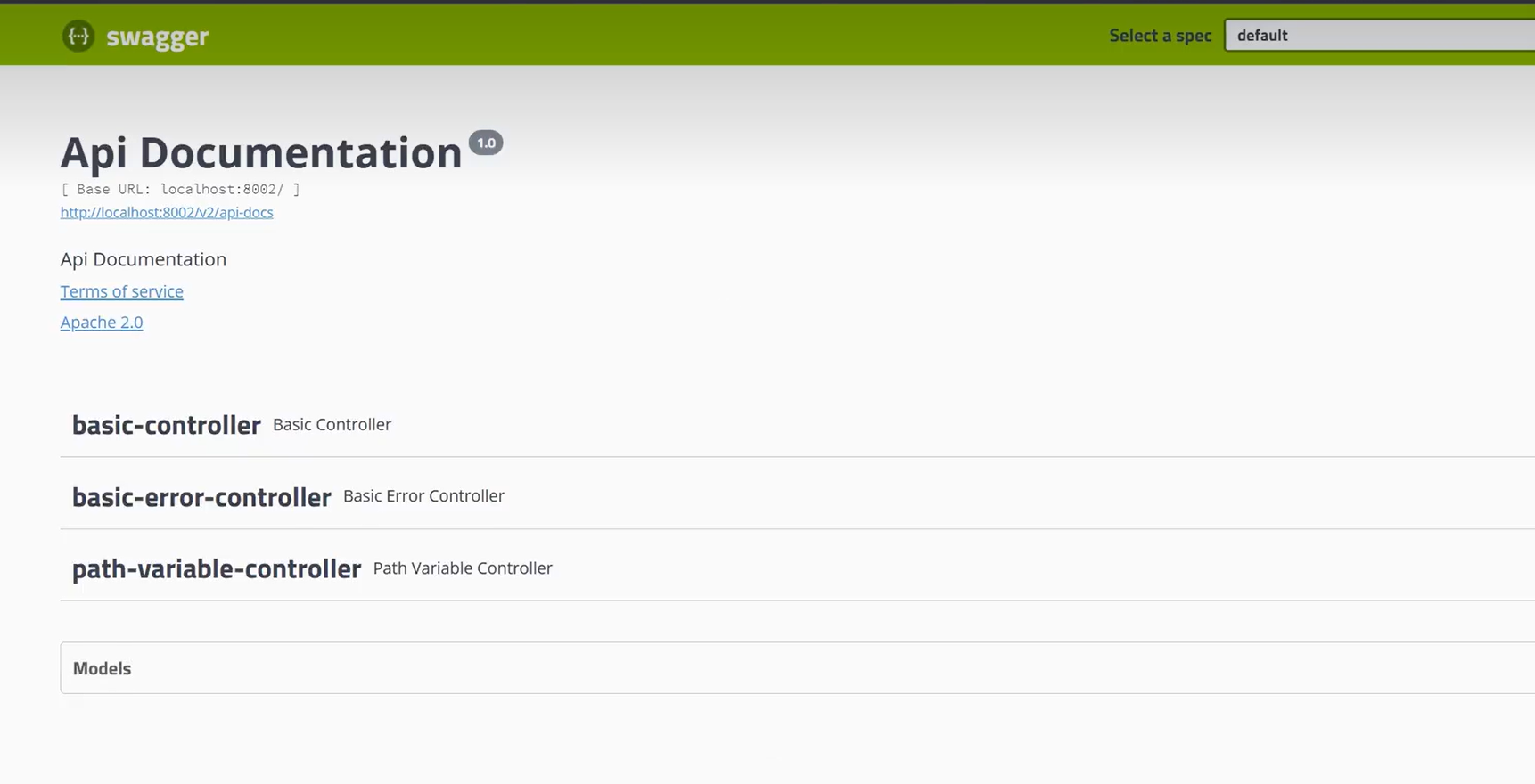 yamlhttp://<host>:8080/swagger-ui.html http://<host>:8080/swagger-ui/index.html http://<host>:8080/v2/api-docs -