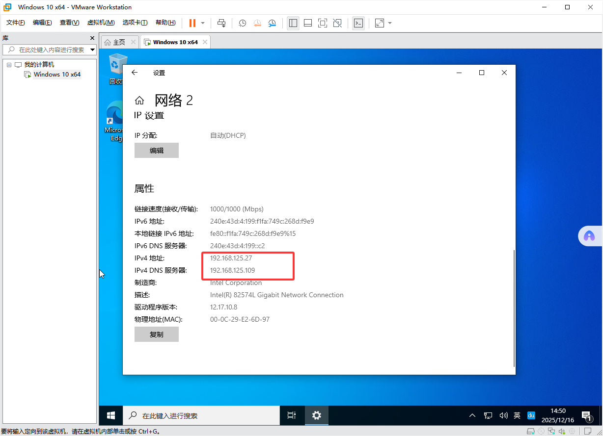 虚拟机网络模式设置为 桥接模式(Bridged),使虚拟机在局域网中表现为一台独立主机,由路由器直接分配 IP 地址。