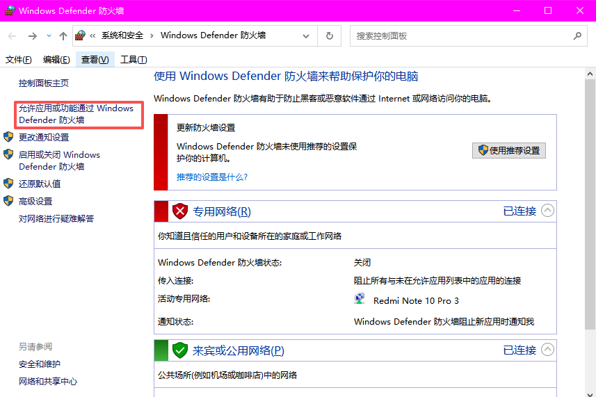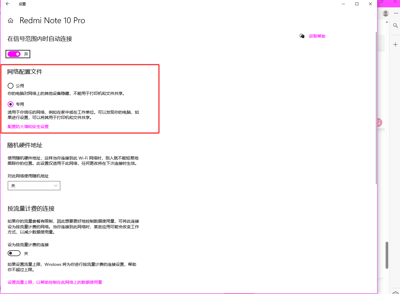 将网络类型设置为 专用(Private)