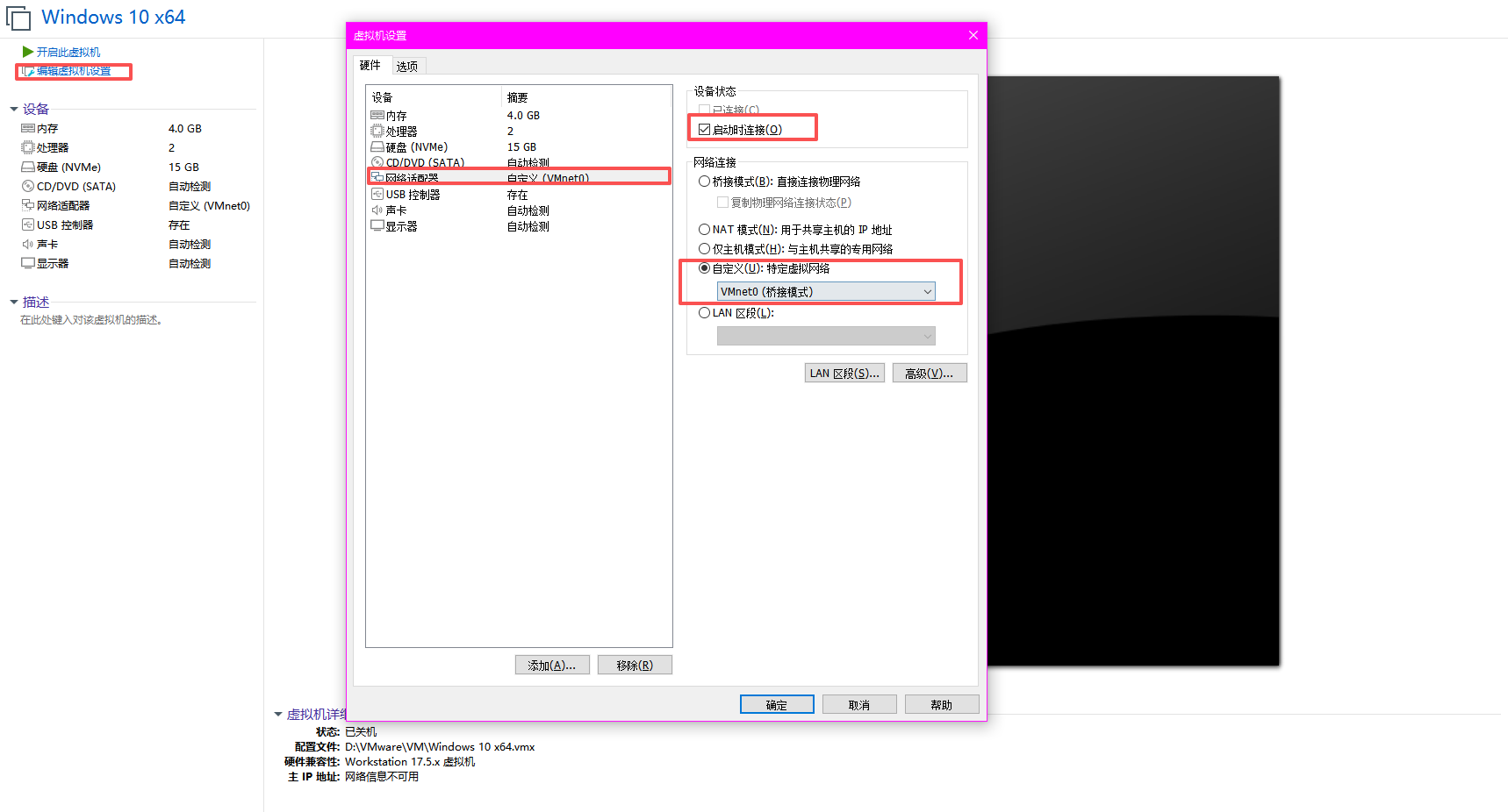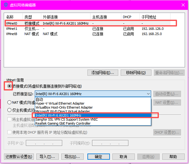 VMnet0 设置为桥接模式