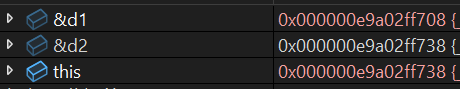 通过this指针可以看到,我们会先析构后定义的d2,再析构先定义的d1