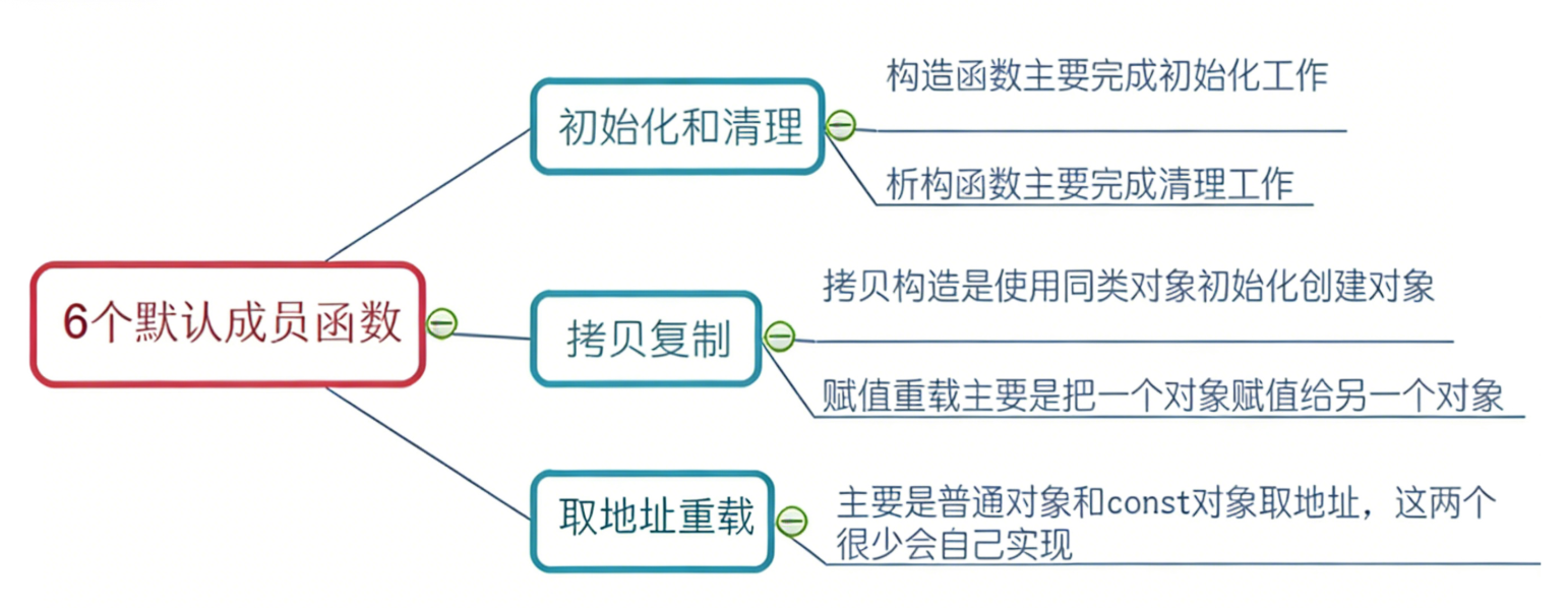 ⑥⽆参构造函数、全缺省构造函数、我们不写构造时编译器默认⽣成的构造函数,都叫做默认构造函数,这三个函数有且只有⼀个存在 ,总结⼀下就是不传实参就可以调⽤的构造就叫默认构造