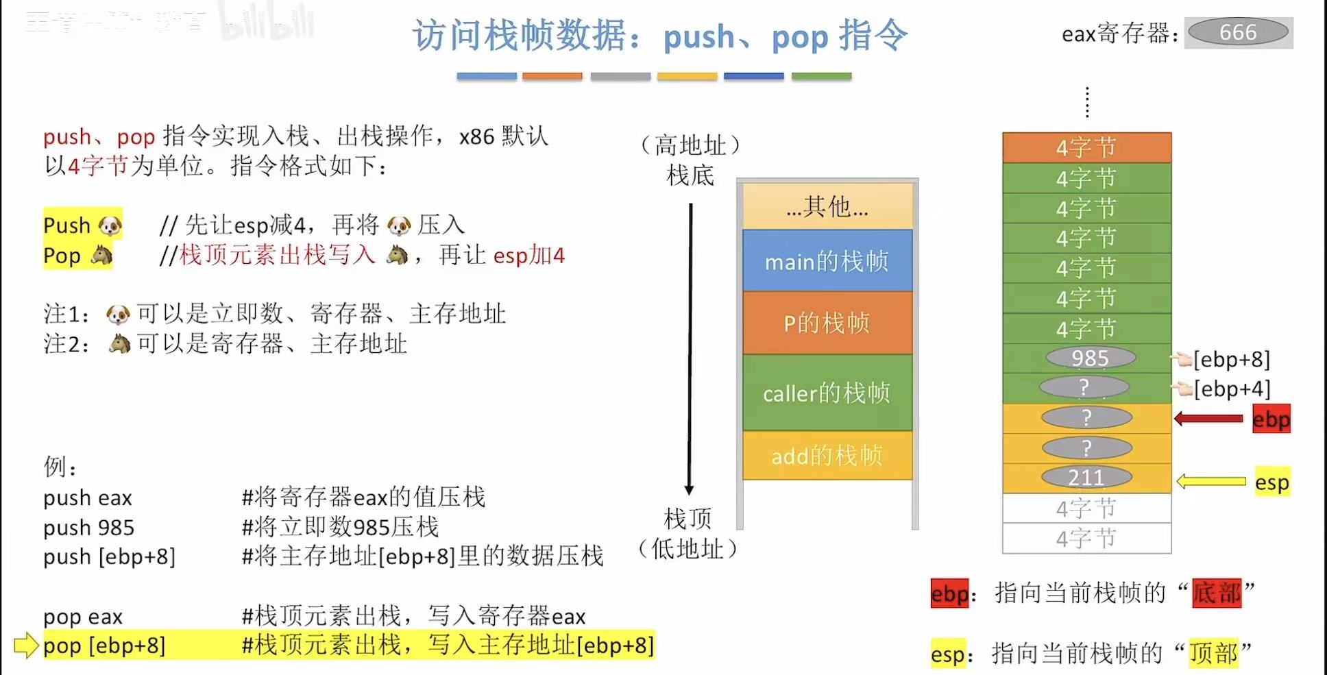 - 所以存数据的位置是当前esp指的下一个格子的位置(空的地方)