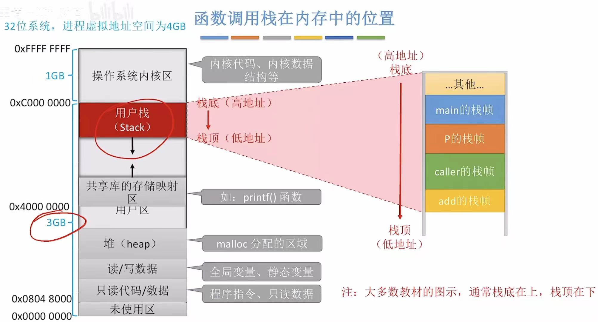 - [1. 函数调用栈在内存中的位置](#1. 函数调用栈在内存中的位置)