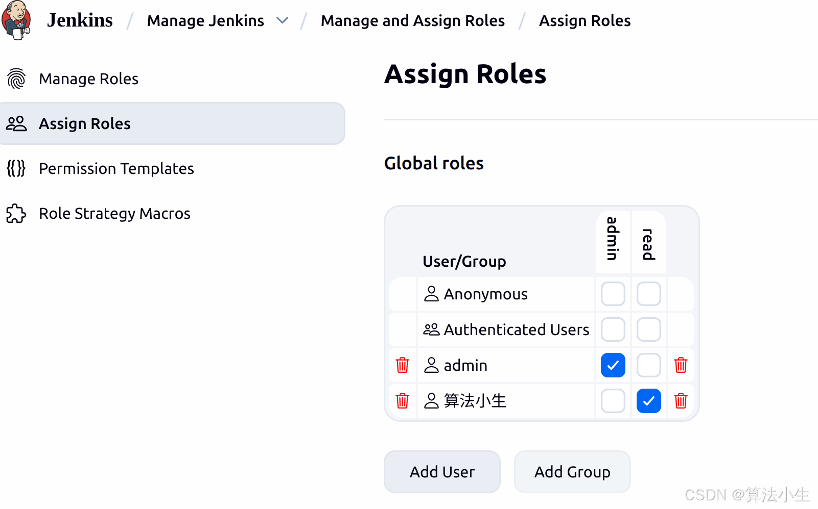 我们选择Role-Based Strategy, 保存后会出现Manag and Assign Roles, 我们点击进入