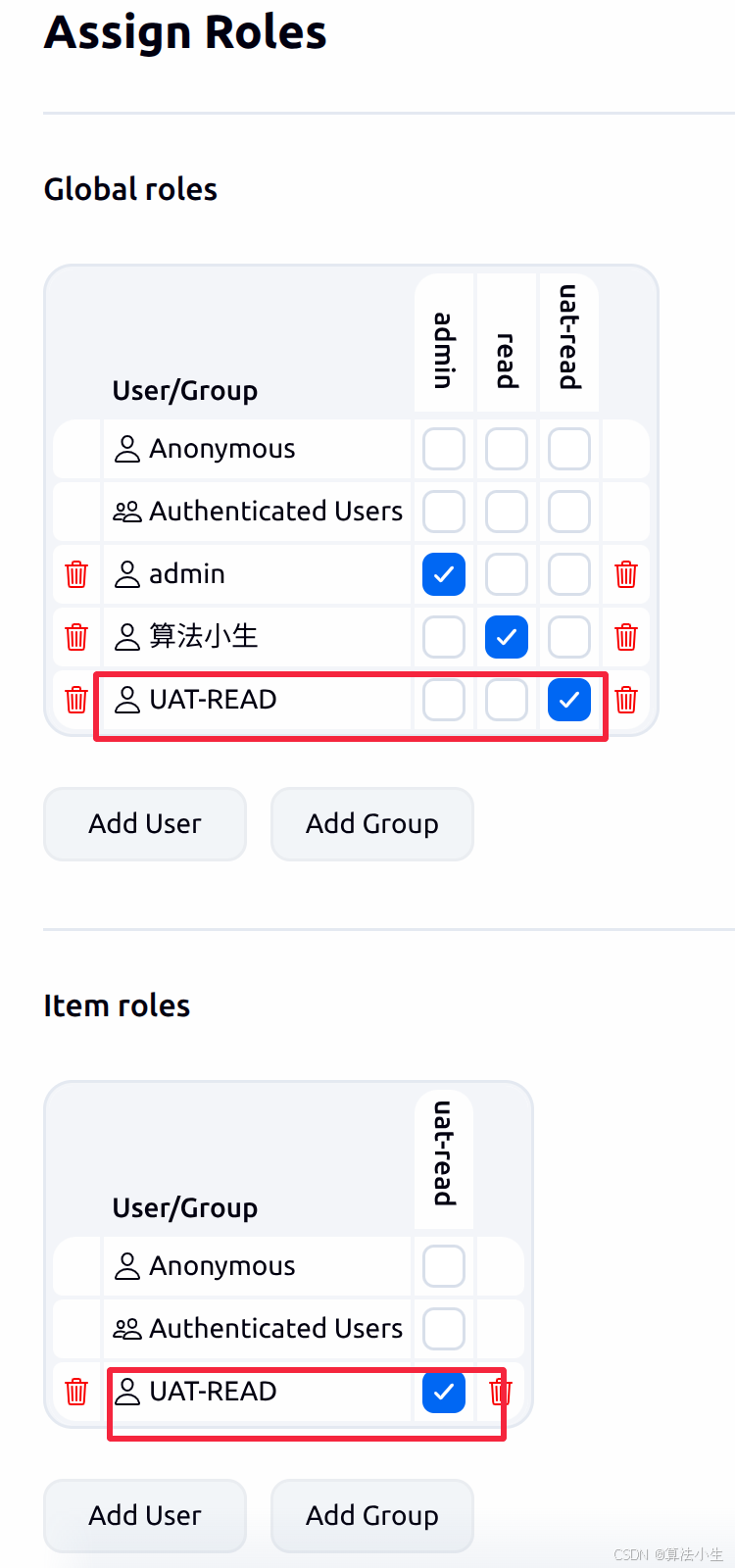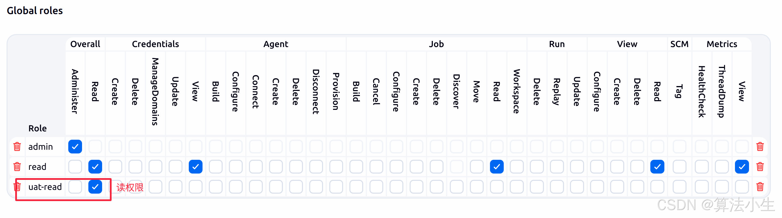 往往项目越来越多,每个团队只关系自己视图或者测试、生产不同视图,我们新建uat-read角色
