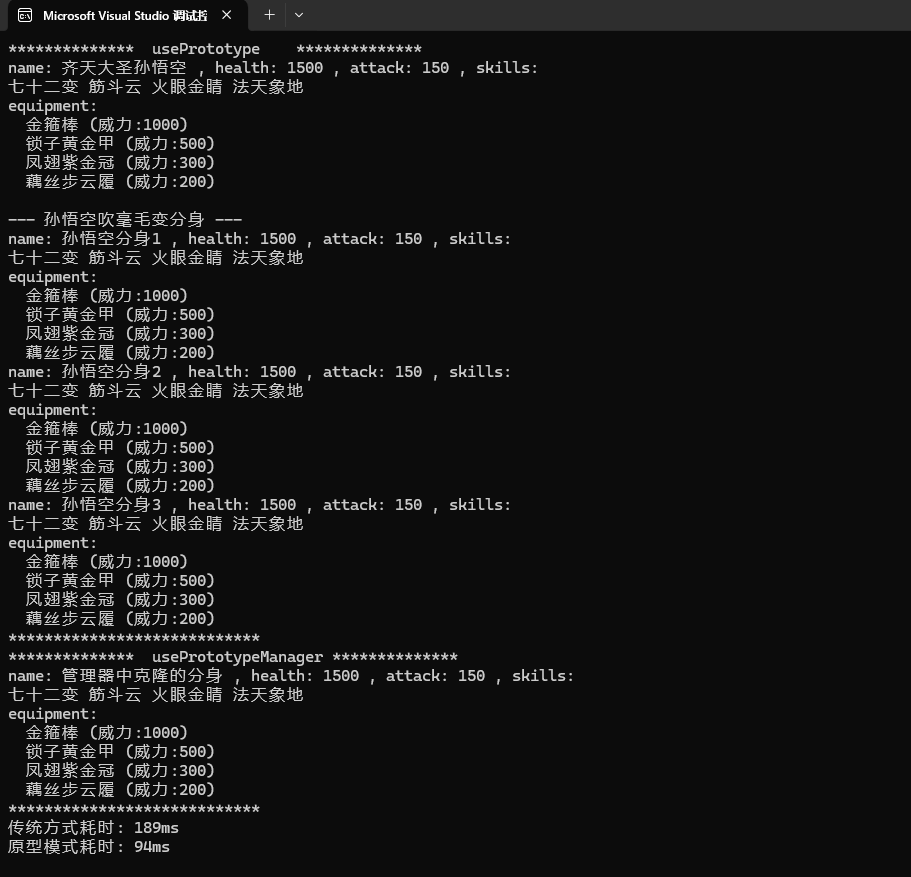 manager.addPrototype("孙悟空", new SunWuKong("齐天大圣孙悟空", 1500, 150));