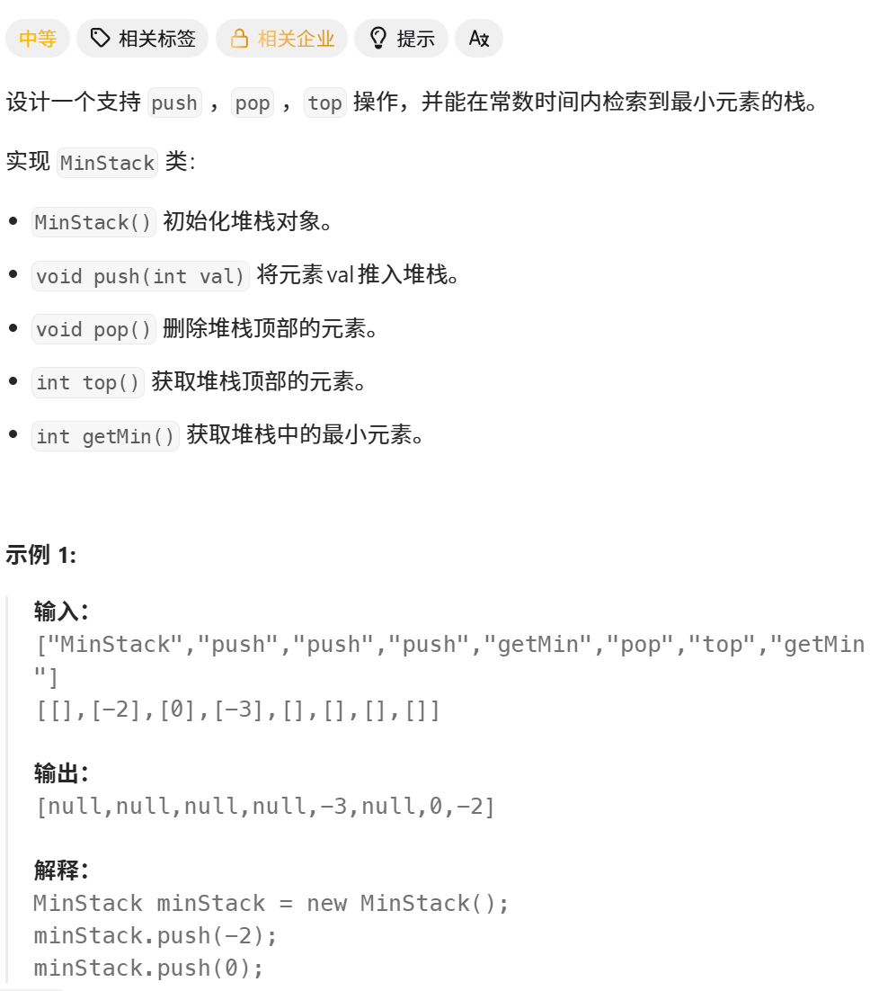 - 如果 stack 和 min 栈顶一样,那么 stack 弹出后,min 的栈顶不再是最小值,也弹出。