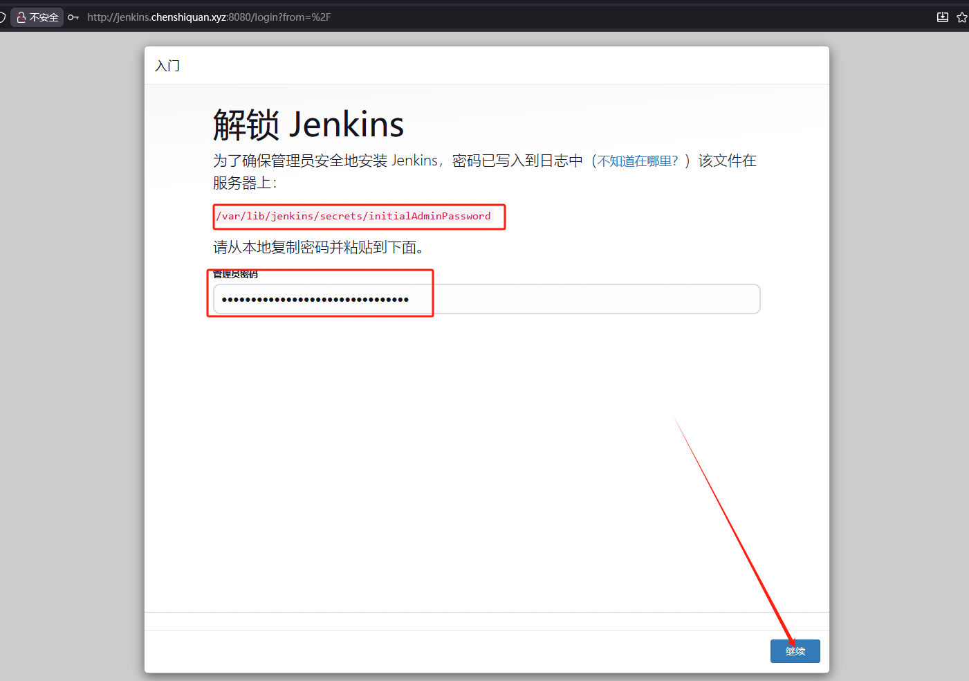 根据提示复制密码粘贴到下面