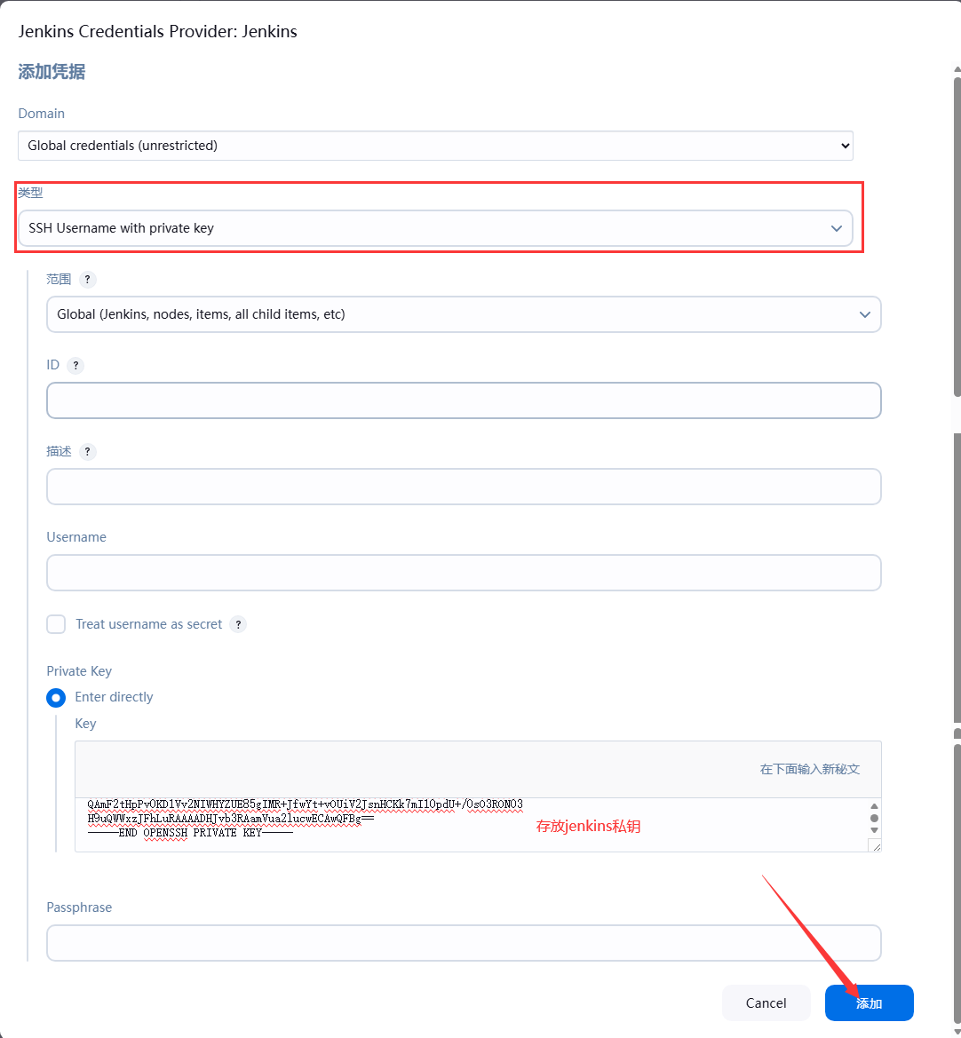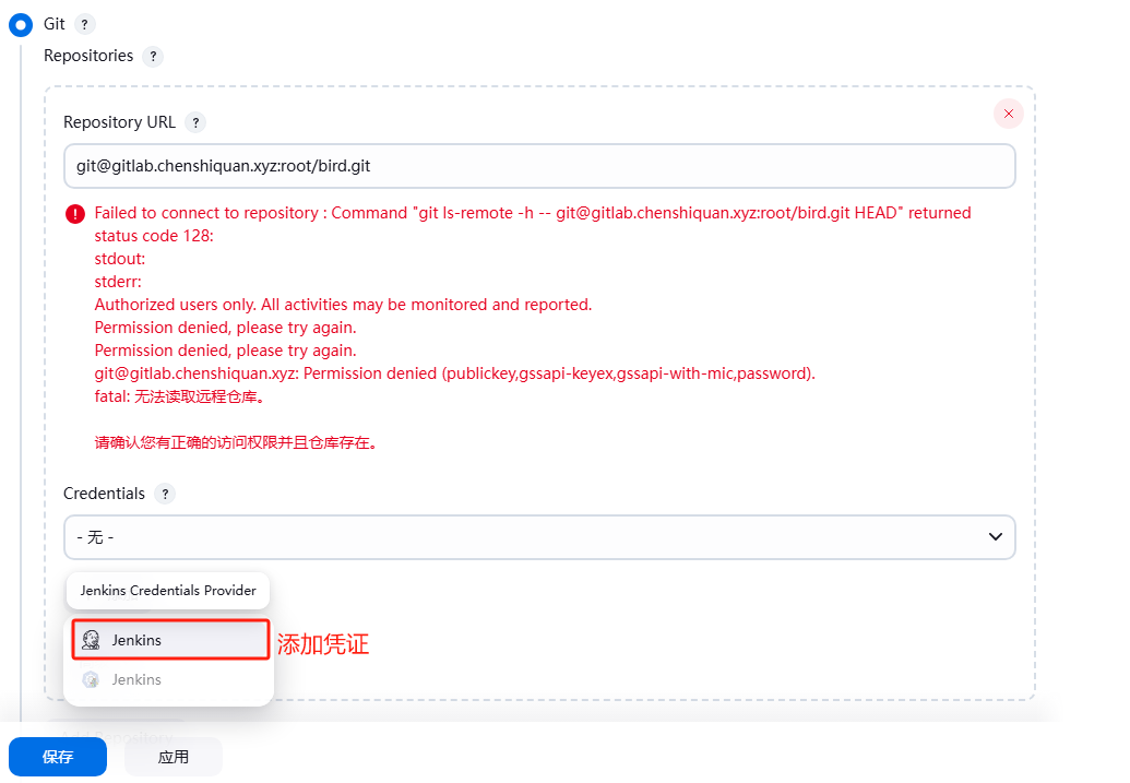 - 需要完成认证才能访问代码仓库,Jenkins支持将认证(凭据)事先定义,并可以在Pipeline中自动引用
