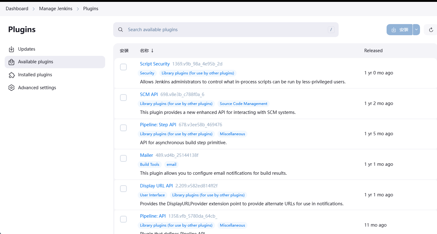 - 插件:https://plugins.jenkins.io/