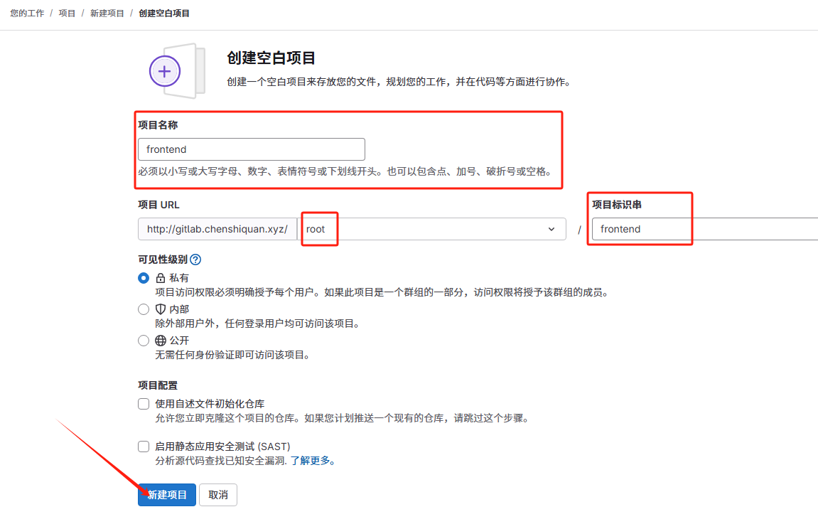 git remote add origin git@gitlab.chenshiquan.xyz:root/frontend.git