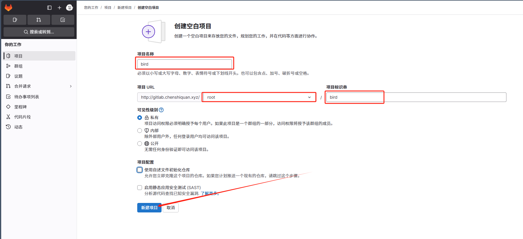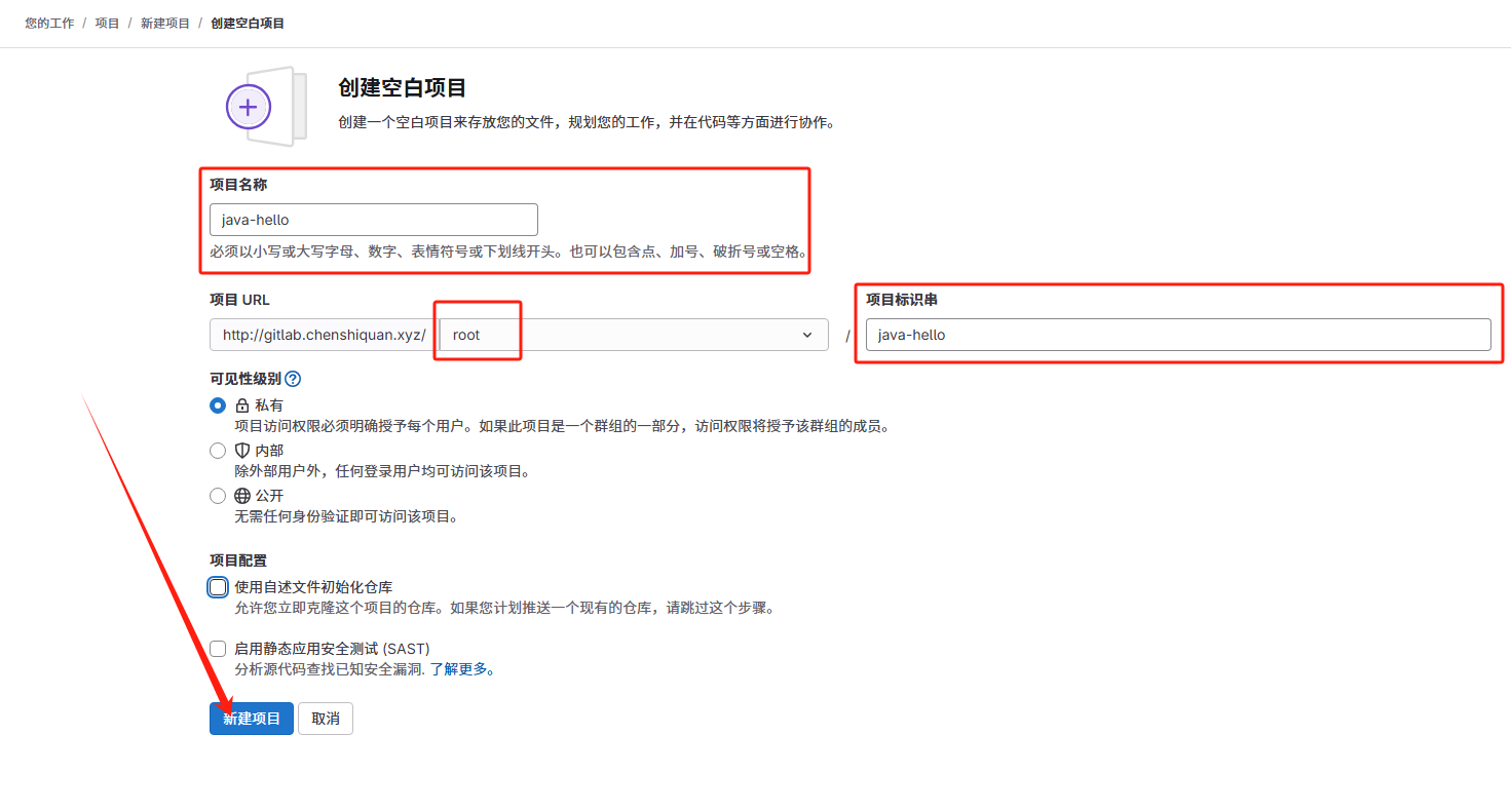 git remote add gitlab git@gitlab.chenshiquan.xyz:root/java-hello.git