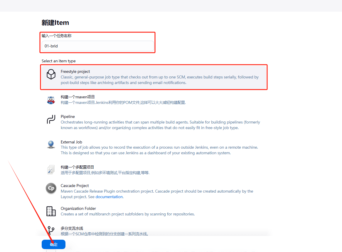 - Jenkins项目类型