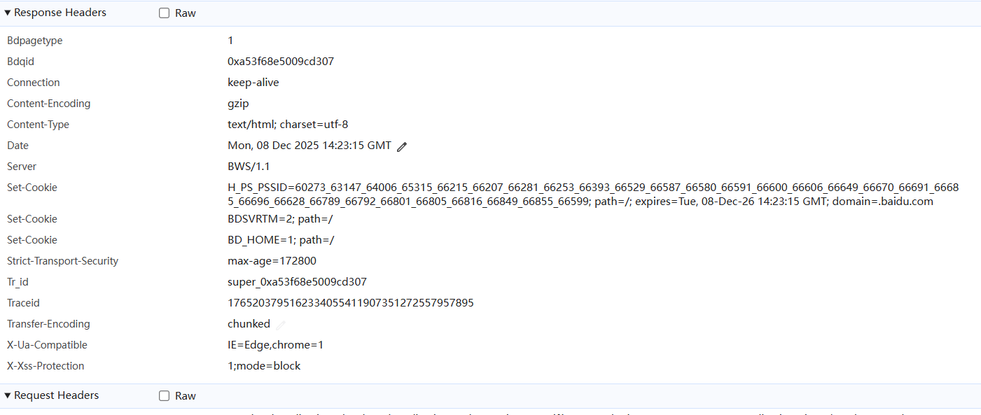 {'Accept-Ranges': 'bytes', 'Cache-Control': 'no-cache', 'Connection': 'keep-alive', 'Content-Length': '227', 'Content-Security-Policy': "frame-ancestors 'self' https://chat.baidu.com http://mirror-chat.baidu.com https://fj-chat.baidu.com https://hba-chat.baidu.com https://hbe-chat.baidu.com https://njjs-chat.baidu.com https://nj-chat.baidu.com https://hna-chat.baidu.com https://hnb-chat.baidu.com http://debug.baidu-int.com https://sai.baidu.com https://mcpstore.baidu.com https://mcpserver.baidu.com https://www.mcpworld.com https://platform-openai.now.baidu.com;", 'Content-Type': 'text/html', 'Date': 'Mon, 08 Dec 2025 14:26:31 GMT', 'Pragma': 'no-cache', 'Server': 'BWS/1.1', 'Set-Cookie': 'BD_NOT_HTTPS=1; path=/; Max-Age=300, PSTM=1765203991; expires=Thu, 31-Dec-37 23:55:55 GMT; max-age=2147483647; path=/; domain=.baidu.com, H_PS_PSSID=60275_63145_66232_66242_66285_66258_66393_66510_66515_66529_66559_66584_66591_66601_66647_66663_66670_66689_66743_66618_66756_66775_66782_66790_66829_66854_66599; path=/; expires=Tue, 08-Dec-26 14:26:31 GMT; domain=.baidu.com, BAIDUID=3D3ADC3C9DAB8339B5E073C394C0D114:FG=1; Path=/; Domain=baidu.com; Max-Age=31536000, BAIDUID_BFESS=3D3ADC3C9DAB8339B5E073C394C0D114:FG=1; Path=/; Domain=baidu.com; Max-Age=31536000; Secure; SameSite=None', 'Traceid': '1765203991162334055412487297369341595359', 'X-Ua-Compatible': 'IE=Edge,chrome=1', 'X-Xss-Protection': '1;mode=block'}