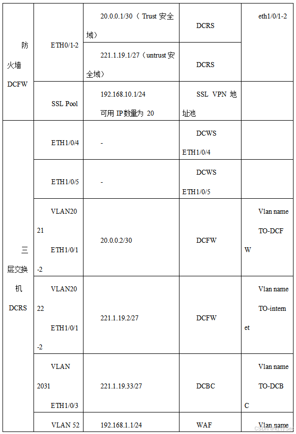 | 5 | 根据网络拓扑图所示,按照 IP 地址规划表,对 WAF 的名称、各接口 IP 地址进行 |
