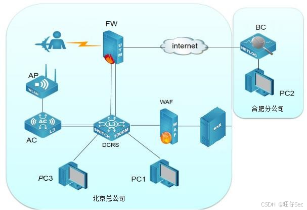 某集团公司原在北京建立了总部,在合肥设立了分公司。总部设有销售、产品、财务、信息技术 4 个部门,分公司设有销售、产品、财务 3 个部门,统一进行 IP 及业务资源的规划和分配。公司规模在 2025 年快速发展,业务数据量和公司访问量增长巨大。为了更好管理数据,提供服务,集团决定建立自己的中型数据中心及业务服务平台,以达到快速、可靠交换数据,以及增强业务部署弹性的目的。集团、分公司的网络结构详见拓扑图。
