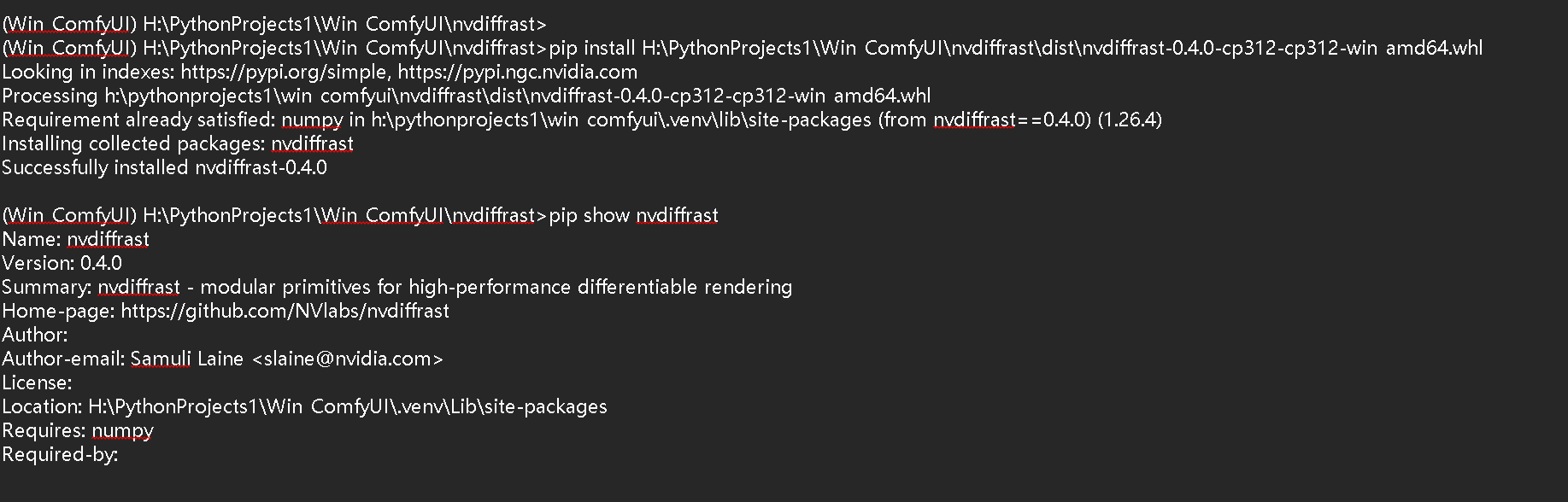 pip install dist\nvdiffrast-0.4.0-cp312-cp312-win_amd64.whl