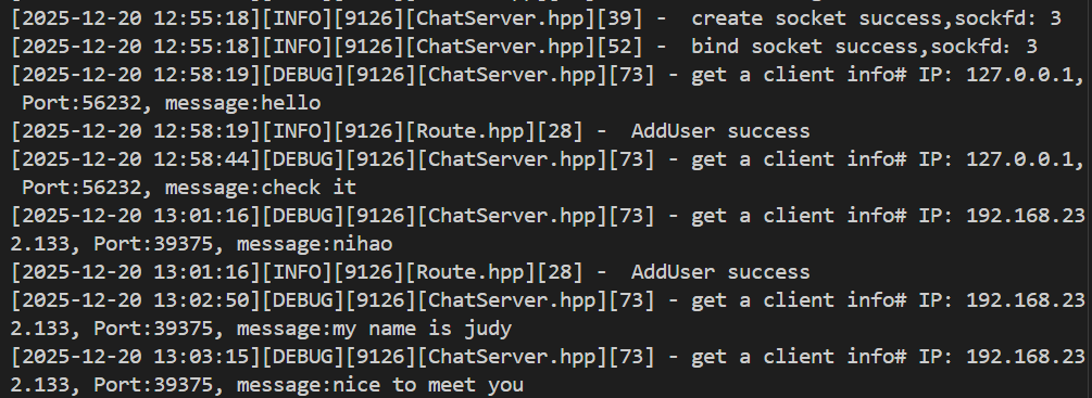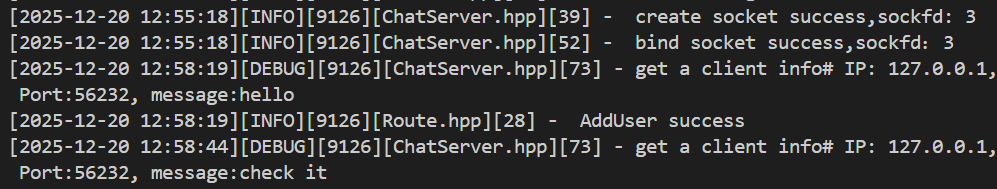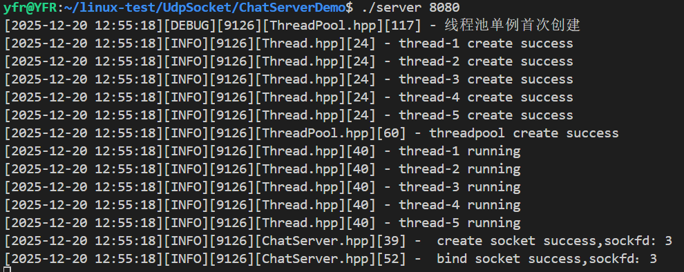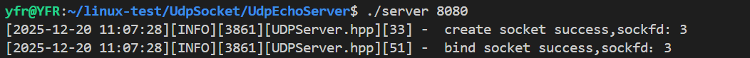 我们采用面向对象方式封装socket相关操作,使用RAII思想管理资源,状态标志标识服务器的启停,并且我还使用到了前面文章讲过的日志实现:https://blog.csdn.net/whispers421/article/details/154695948?spm=1001.2014.3001.5502