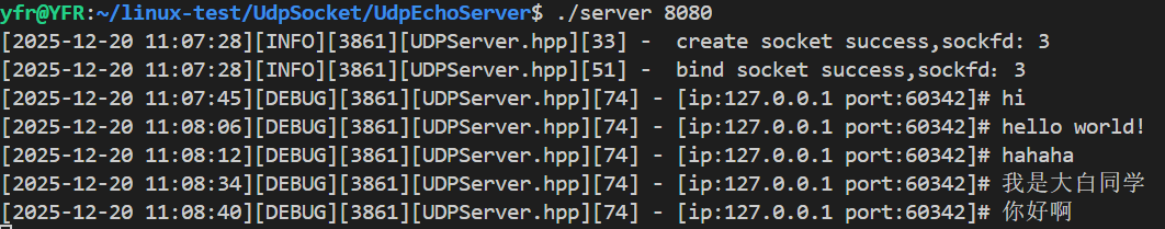 全文完整代码已上传到我的Gitee:https://gitee.com/da-bai-classmate/linux-test/tree/master/UdpSocket