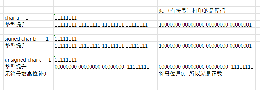 但是还有一个问题,最后我要输出的结果的占位符是"%d",打印的是十进制数字,所以我们还要进行"整型提升",整型提升补的是符号位