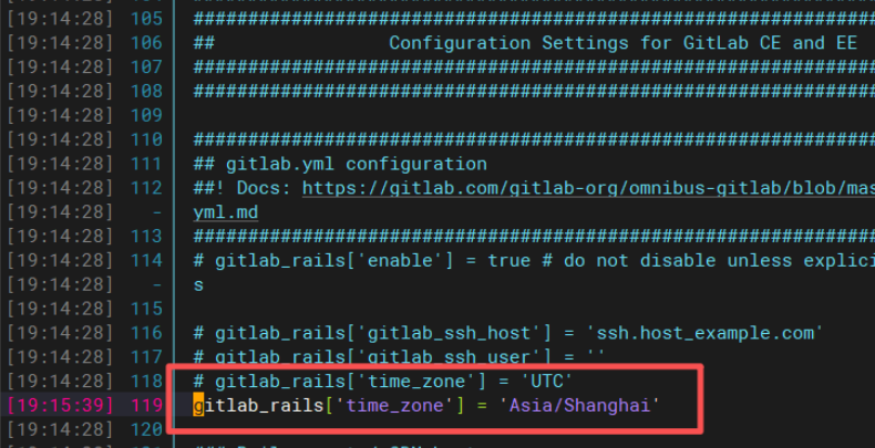 gitlab_rails['time_zone'] = 'Asia/Shanghai'