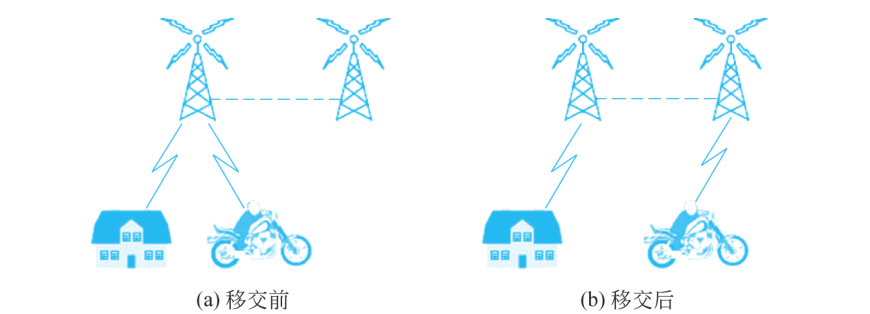 移动电话网络和传统Internet之间的另一个差异是移动性。当用户移出一个蜂窝基站的覆盖范围,进入另一个蜂窝基站的覆盖范围时,数据流必须从旧蜂窝基站重新路由到新蜂窝基站。这一技术称为移交 (handover)或转交(handoff),如图1-20所示。
