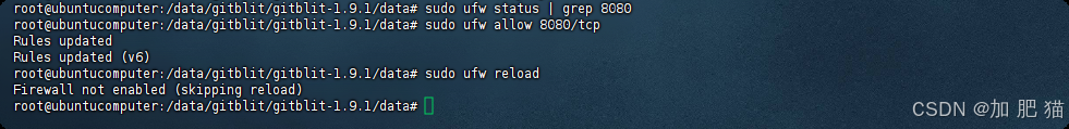 sudo ufw status - 如果8080端口未放行,执行以下命令