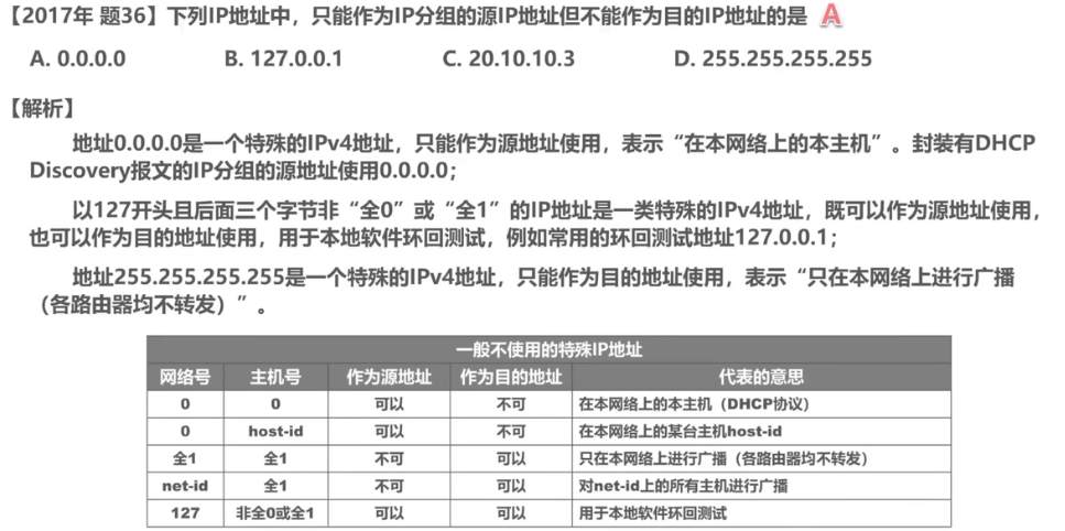- 主机号为"全0"的地址是网络地址,不能分配给主机或路由器的各接口